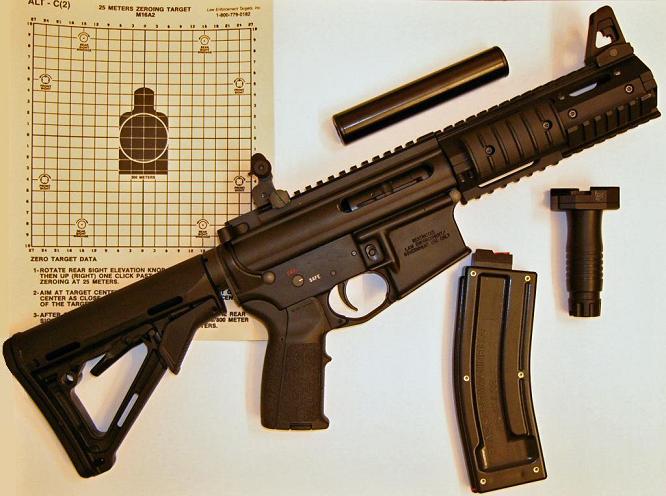 FOR ABOUT 500.00 DOLLARS YOU CAN GET A GREAT SHOOTING .22 CALIBER UNDERSTUDY OF THE COLT M4, IT IS ABOUT 5.4 LBS BUT WITH ALL OF THE ASSCESSIORIES THAT CAN GO ON IT IT WOULD WEIGH A SERVICE WEIGHT FOR SUE EXAMPLES OF THINGS THAT YOU CAN OUT FIT IT WITH IS